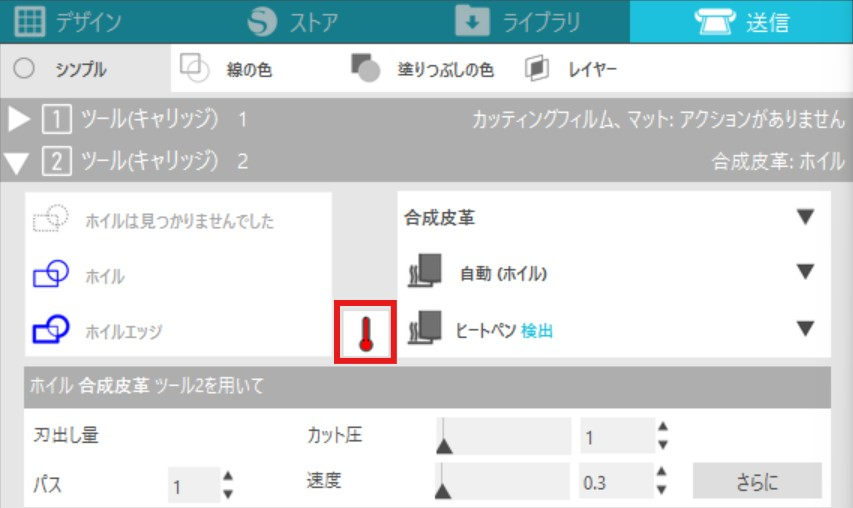 ポップアップメニューで「あとで」をクリックした場合は、SIlhouette Studioの送信メニューのヒートボタンをクリックすると加熱を開始することもできます。