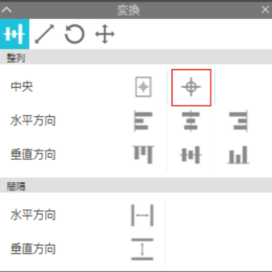 選択したすべてのオブジェクトの位置関係はそのままに、ページの中央に移動します。
