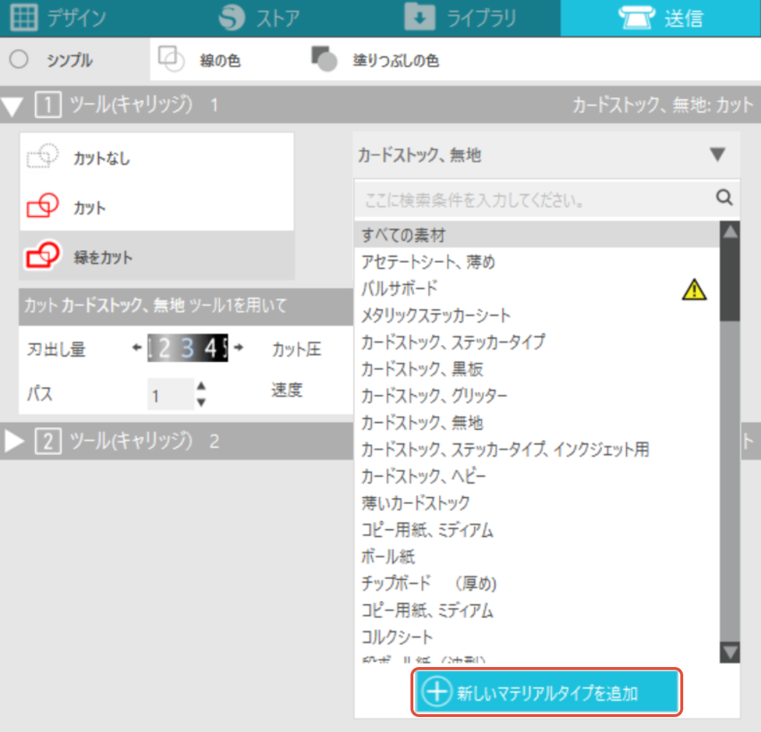 Silhouette Studioにプリセットされたカット条件を微調整して新たにカット条件を変更した時や、手動でカット条件を設定した時などは、必要に応じてカット条件を保存しておくことができます。