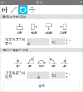 角度を直接入力して回転させる場合は、オブジェクトを選択して角度を入力したあとに [ 適用 ] ボタンをクリックします。
