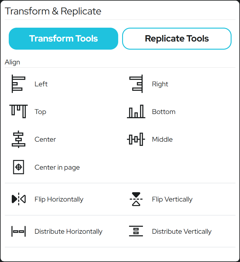 変形ツールは、選択したオブジェクトや画像を整列・反転・移動・拡大縮小することができます。